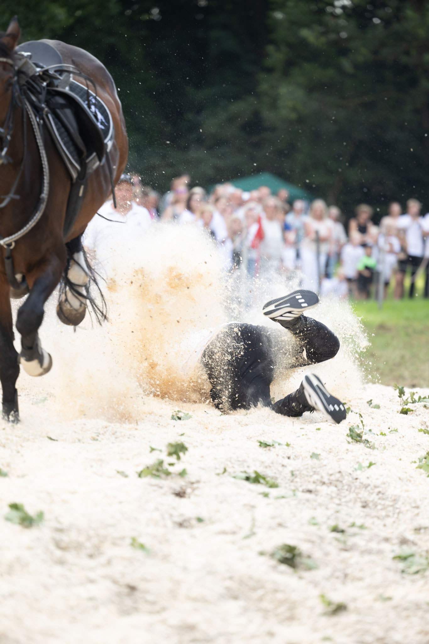 Der Kranzreiterverein Hahlen e.V. hat es sich zum Ziel gesetzt das traditionellen Kranzreiten zu bewahren und weiterzuführen. Seit über 100 Jahren wird der Reiterwettkampf durch die Dorfjugend ausgetragen. Ziel ist es, einen an einem Gerüst, (dem s.g. Galgen) hängenden Kranz aus Eichenlaub von einem galoppierenden Pferd aus mit der Hand zu greifen und zu Boden zu reißen. Mit zunehmender Höhe des Kranzes, ist dabei ein Verlassen des Pferderückens und die anschließende Landung im Sägemehl unumgänglich. Der Sieger des Reitens, der Kranzreiter-Präsident, regiert die Reiterschar zusammen mit seiner Präsidentin jeweils bis zum nächsten Kranzreiten. Detaillierte Informationen zu Regel und Ablauf des Wettkampfes, finden sie auch auf dieser Seite. Am besten ist aber, sich die Sache selbst einmal anzuschauen…
